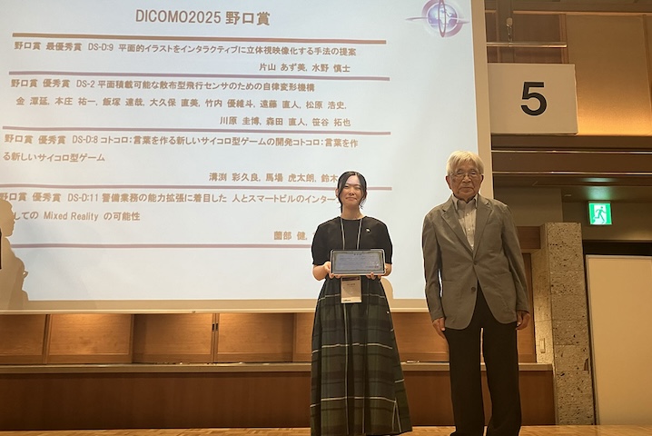 S. Kato, S. Mizuno, "Improvement of an Interactive Media System "RAKUGACKY"", Proc. of 2016 International Conference on Cyberworlds (Cyberworlds 2016), pp. 227-230 (2016.9). (The Best Poster Award)