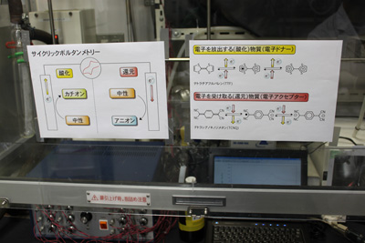 PDの村田さんによるサイクリックボルタンメトリーの測定。 |