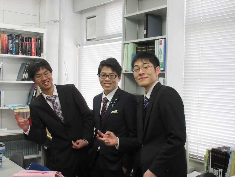 伊熊君と加藤君と後ろの長田君