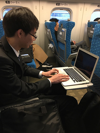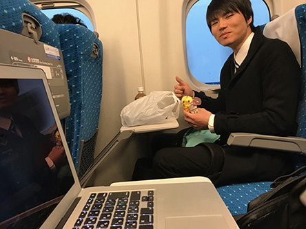 ポスター発表前の西川君と遊びに来た鵜飼君