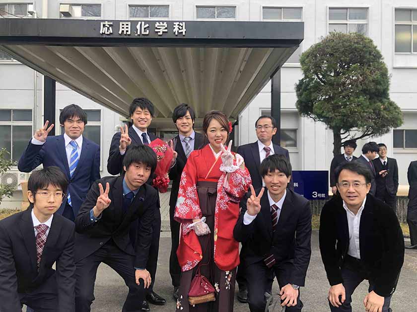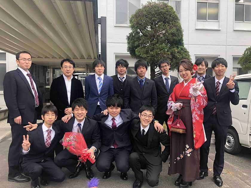 卒業生と森田先生、村田先生
