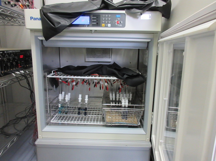 カラムオーブン(センシュー科学 SSC2120, 右側) 0~+85℃の領域でHPLCカラムの温度制御ができます。特に低温下でのHPLCによる光学異性体の分離に力を発揮します。 フォトダイオードアレイ紫外可視検出器(島津 SPD-M20A, 中段) 190~800 nmの広い波長領域でクロマトグラムと吸収スペクトルをモニターできます。 示差屈折計検出器(島津 RID-10A, 最上段) 安定化までの時間が短く、分析感度も高いことが特徴です。 |