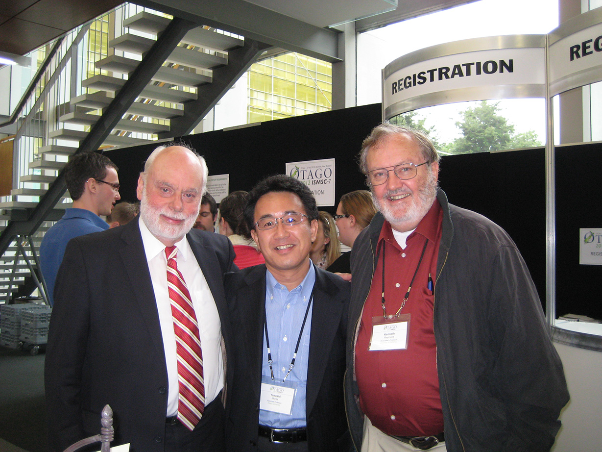 Sir Fraser Stoddart 教授(写真左)、Kenneth Raymond 教授(写真右)とのベストショット