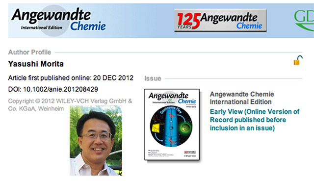 Angewandte Chemie 誌では、過去10年間に発表した論文が10報・25報・50報・100報に達した著者の中から厳選し、プロフィールを写真付きで紹介しています。今回は10報目の掲載による発表です。是非ご覧下さい。記事はこちら。