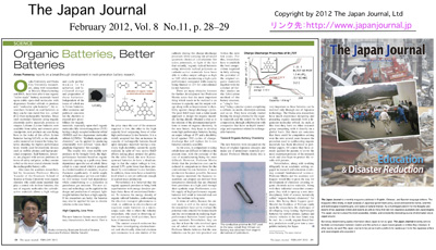 The Japan Journal の取材を受け、分子スピン電池に関する我々の研究成果が、2月号に掲載されました。