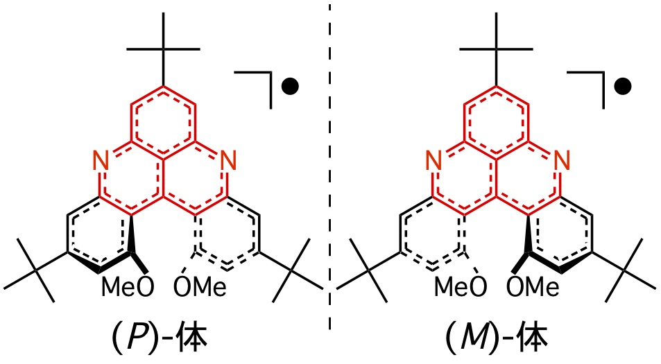 フェナレニルをヘリセン型の非平面π電子構造に組みこんだ初めての光学活性なスピン非局在型の中性ラジカルの合成と物性に関する論文が