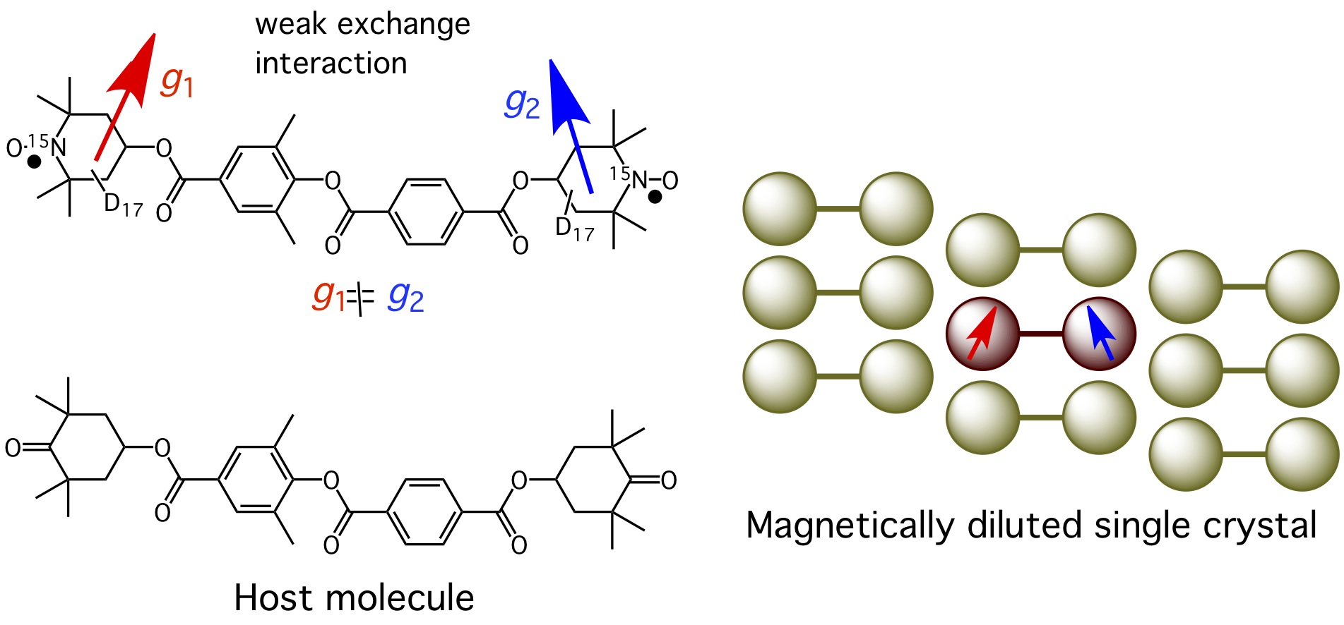 有機ビラジカルの電子スピンを量子ビットとして用いた制御NOTゲートに関する論文が、Angew. Chem., Int. Ed. にアクセプトされ、web上で公開されました。量子演算のためのマイクロ波による電子スピンの位相制御が可能になりました。合成有機化学による安定なビラジカル内での適切な電子スピン間相互作用とg-テンソルエンジニアリングの実現、そして適切なホスト分子の開発による