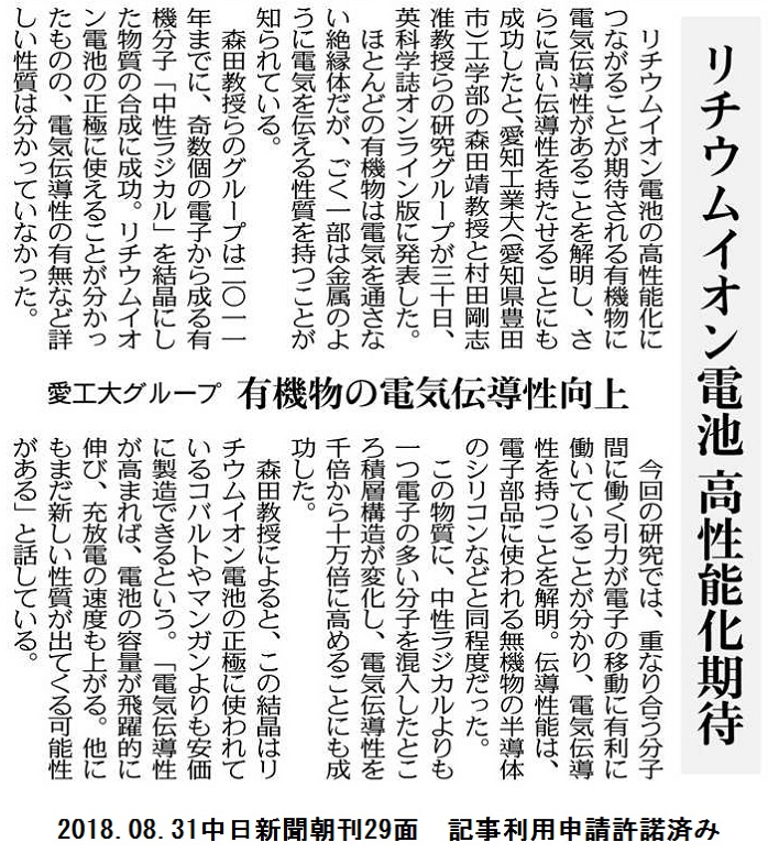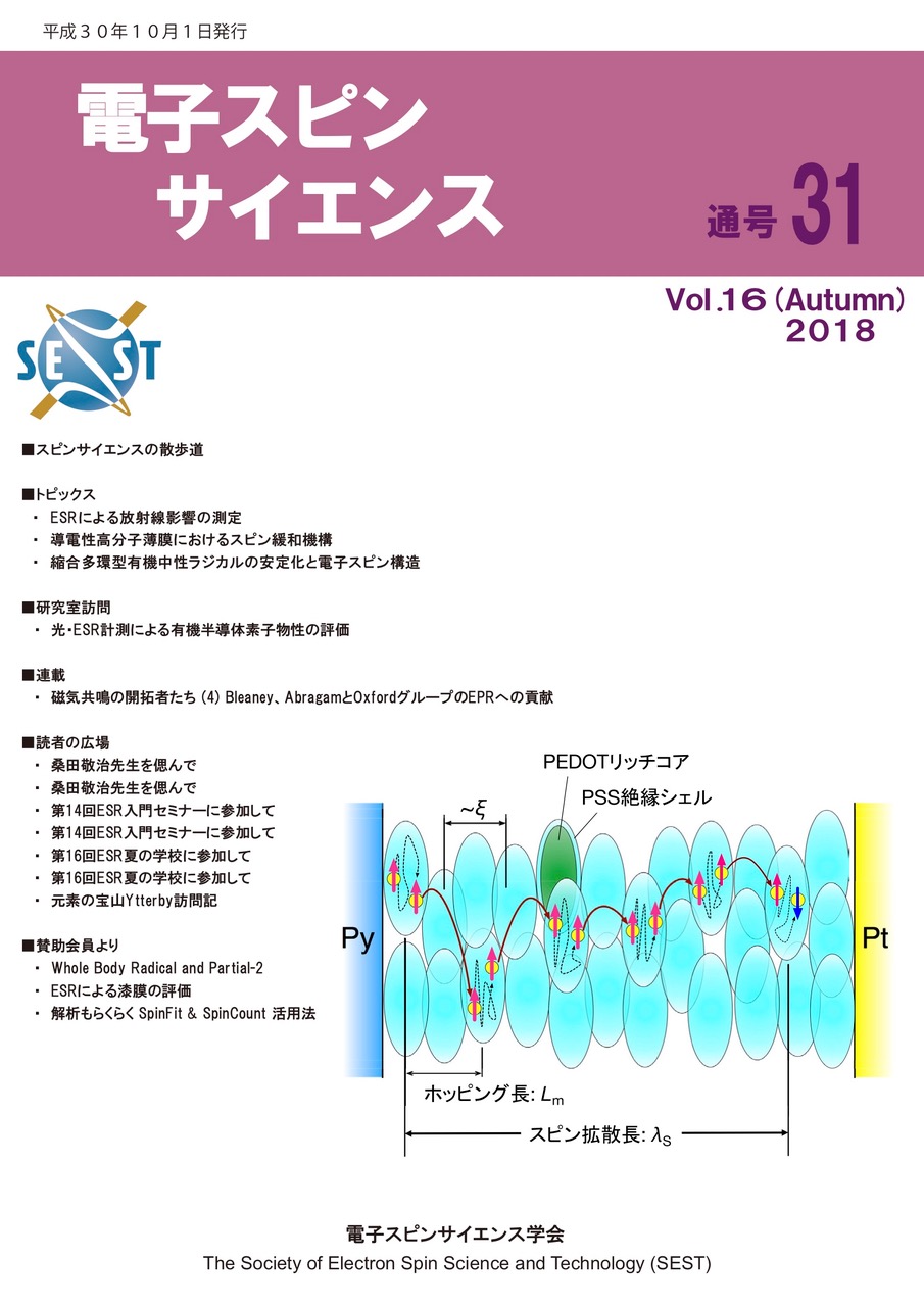 電子スピンサイエンス学会(SEST)の学会誌の2018年秋号に、森田教授、村田准教授が執筆した解説論文が掲載されました。最近我々の研究室で行った、トリオキソトリアンギュレン中性ラジカルの性質とその置換基効果について解説しています。
