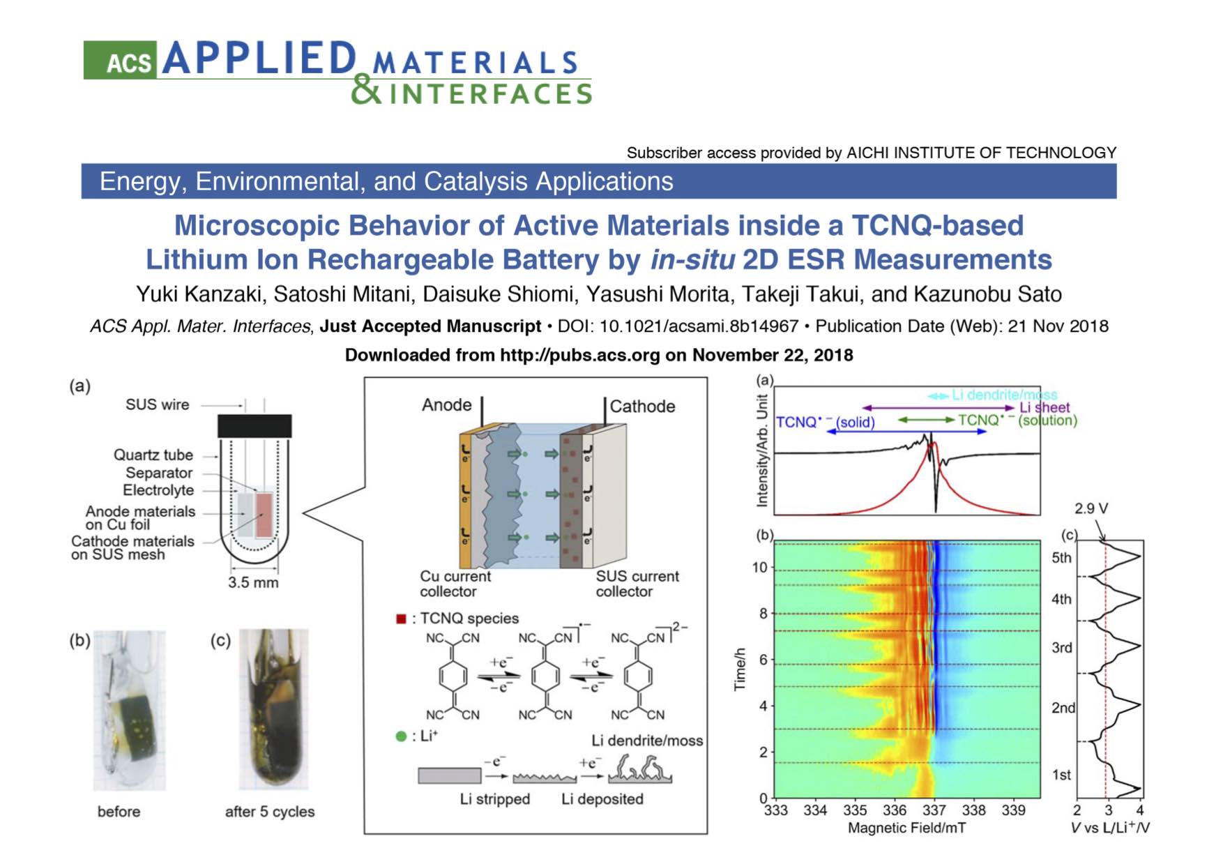 大阪市立大学の佐藤教授・工位教授の研究グループとの共同研究に関する研究成果が、アメリカ化学会の国際的科学雑誌であるACS Applied Materials & Interfacesに掲載されました。