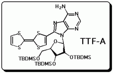 TTF-アデニン誘導体はTTF-U(T)とは対照的に母体構造であるTTFに比べてドナー性の低下が示唆された。また、そのTCNQ、シアナニル酸錯体を合成し、TCNQ錯体ではTCNQのイオン化度が小さく、CTバンドが高エネルギー領域に見られたことから交互積層型電荷移動錯体であると思われる。[8]