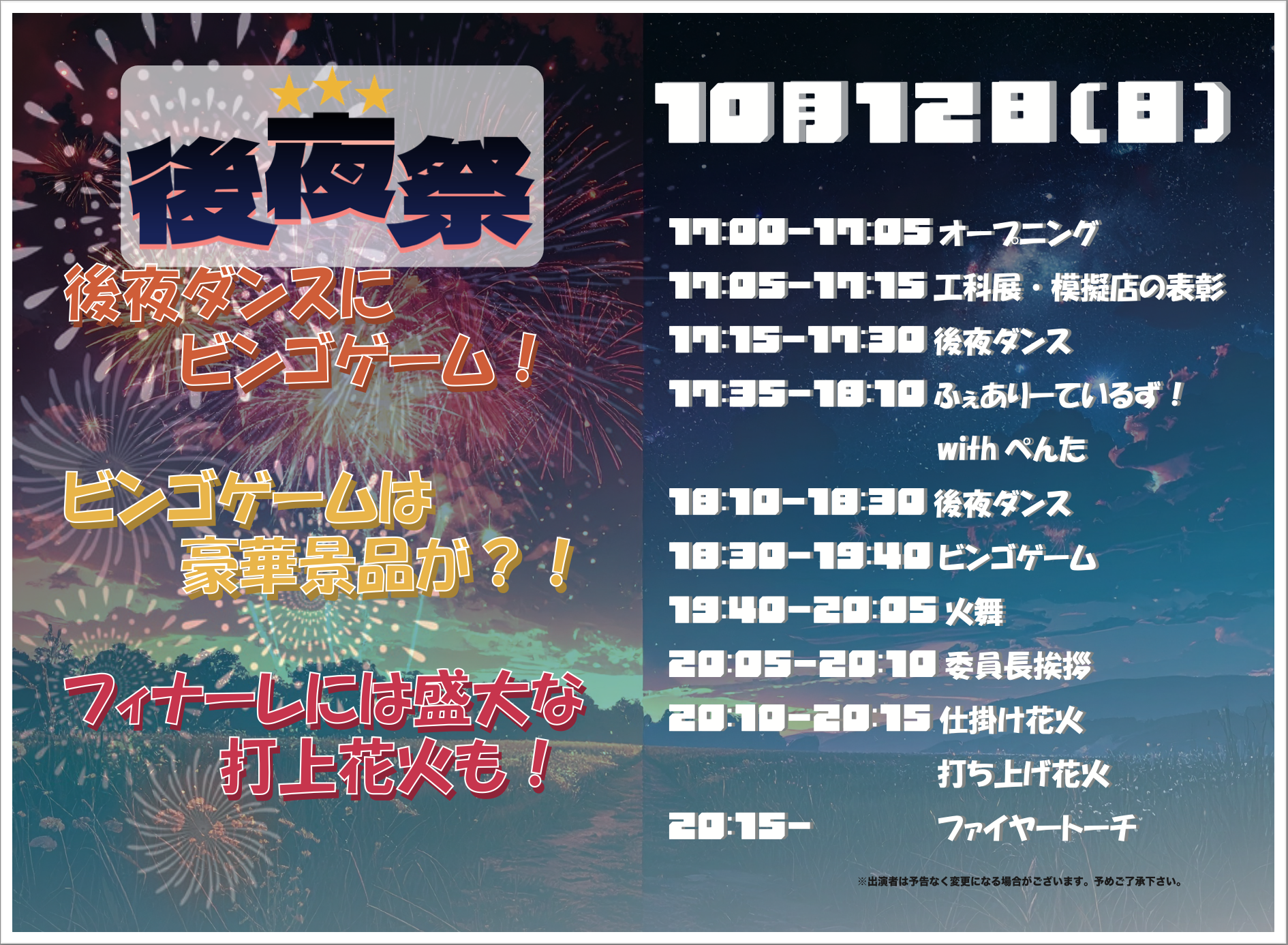 ※時間外でのトラブルに関しましては大学祭実行委員会は一切責任を負いません。