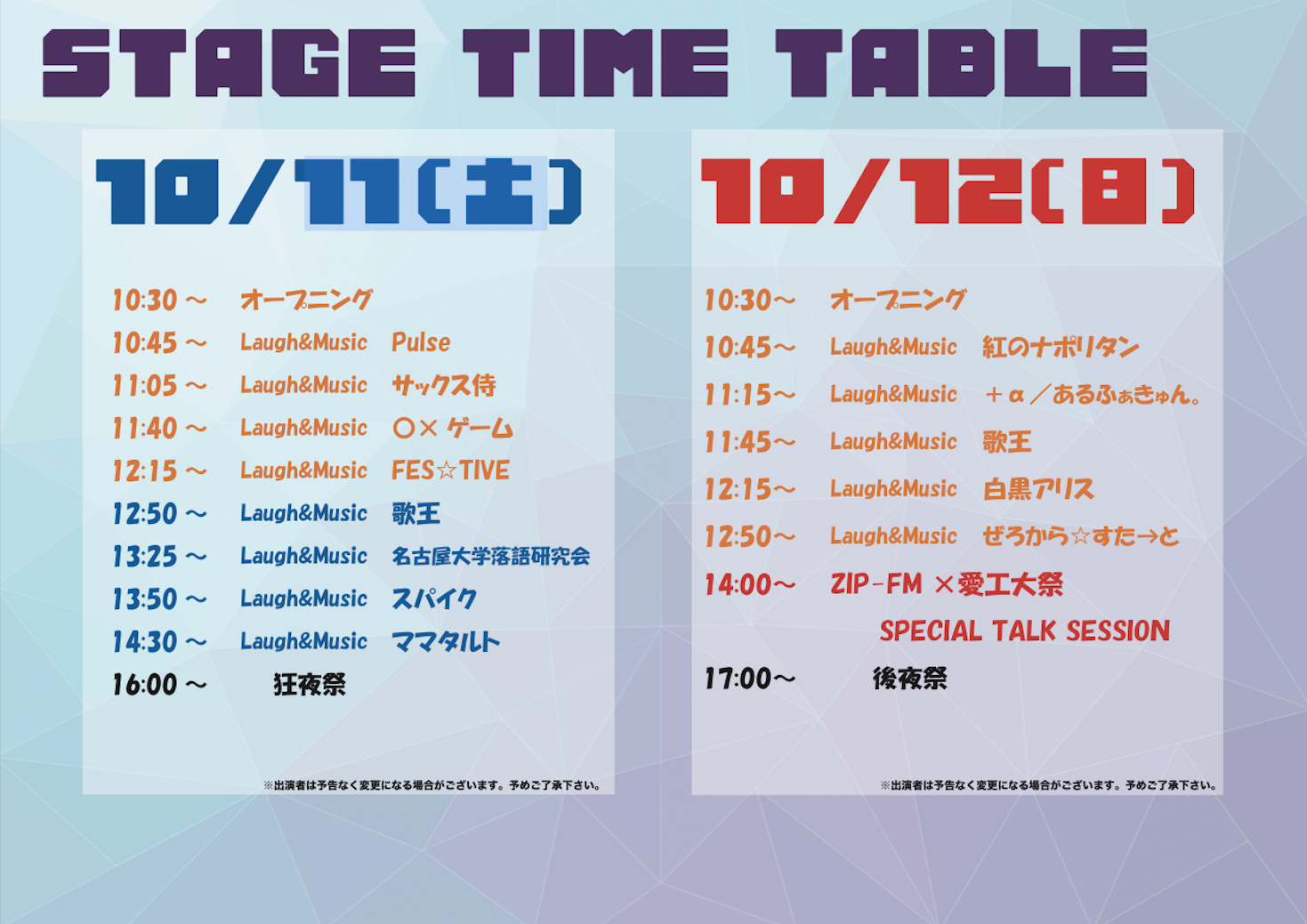 ※時間外でのトラブルに関しましては大学祭実行委員会は一切責任を負いません。