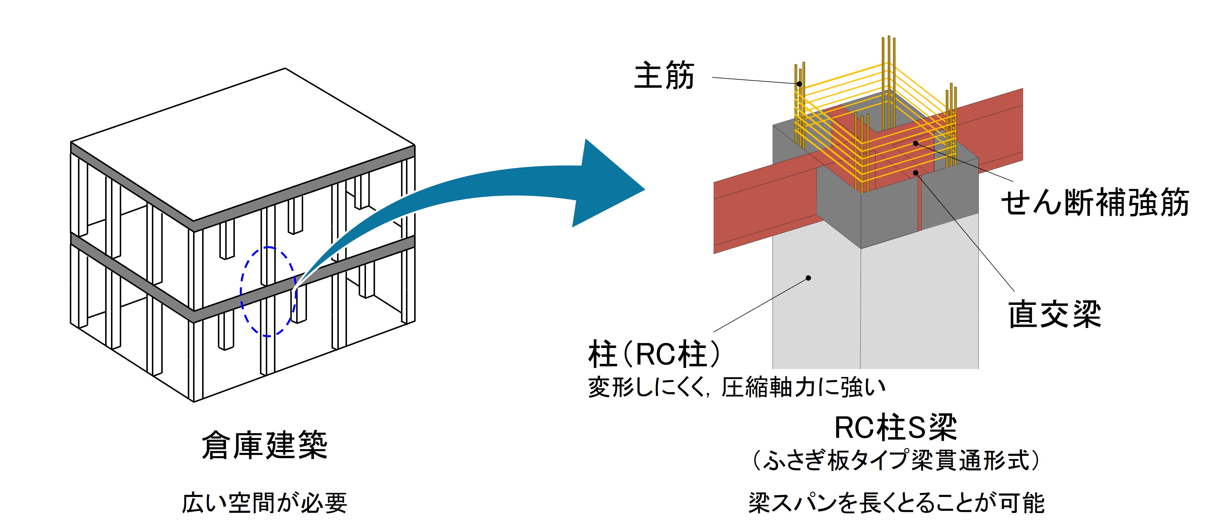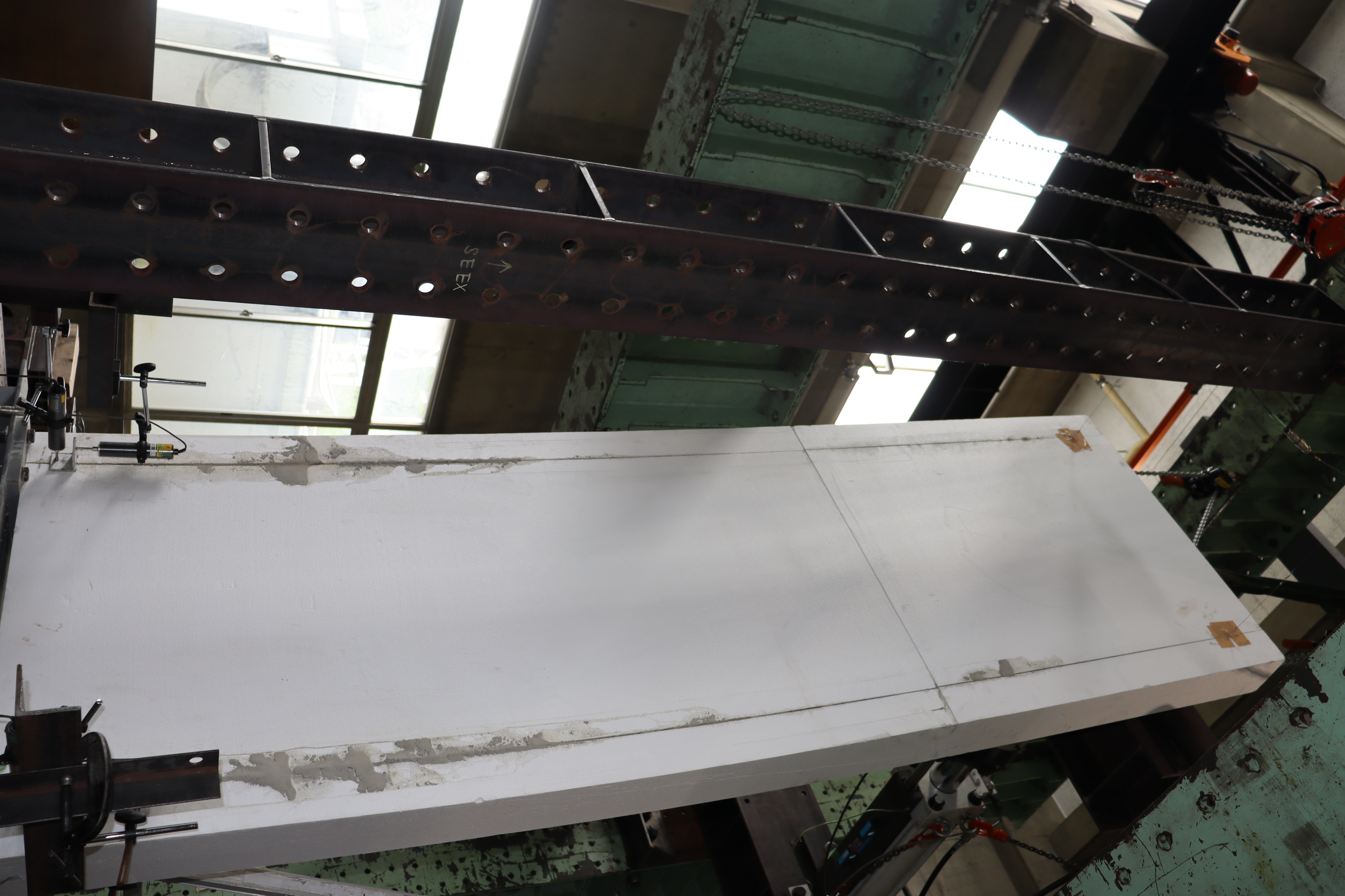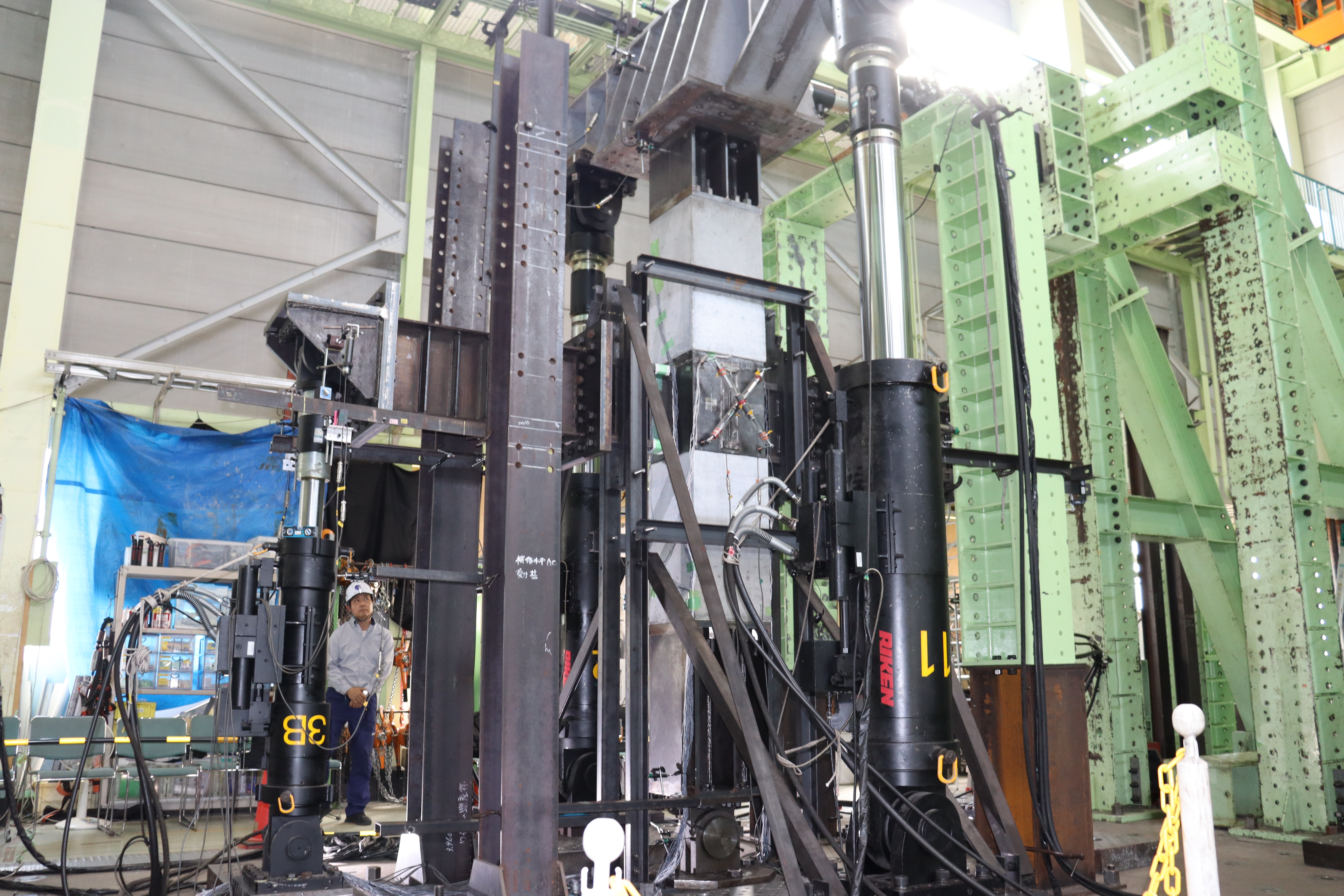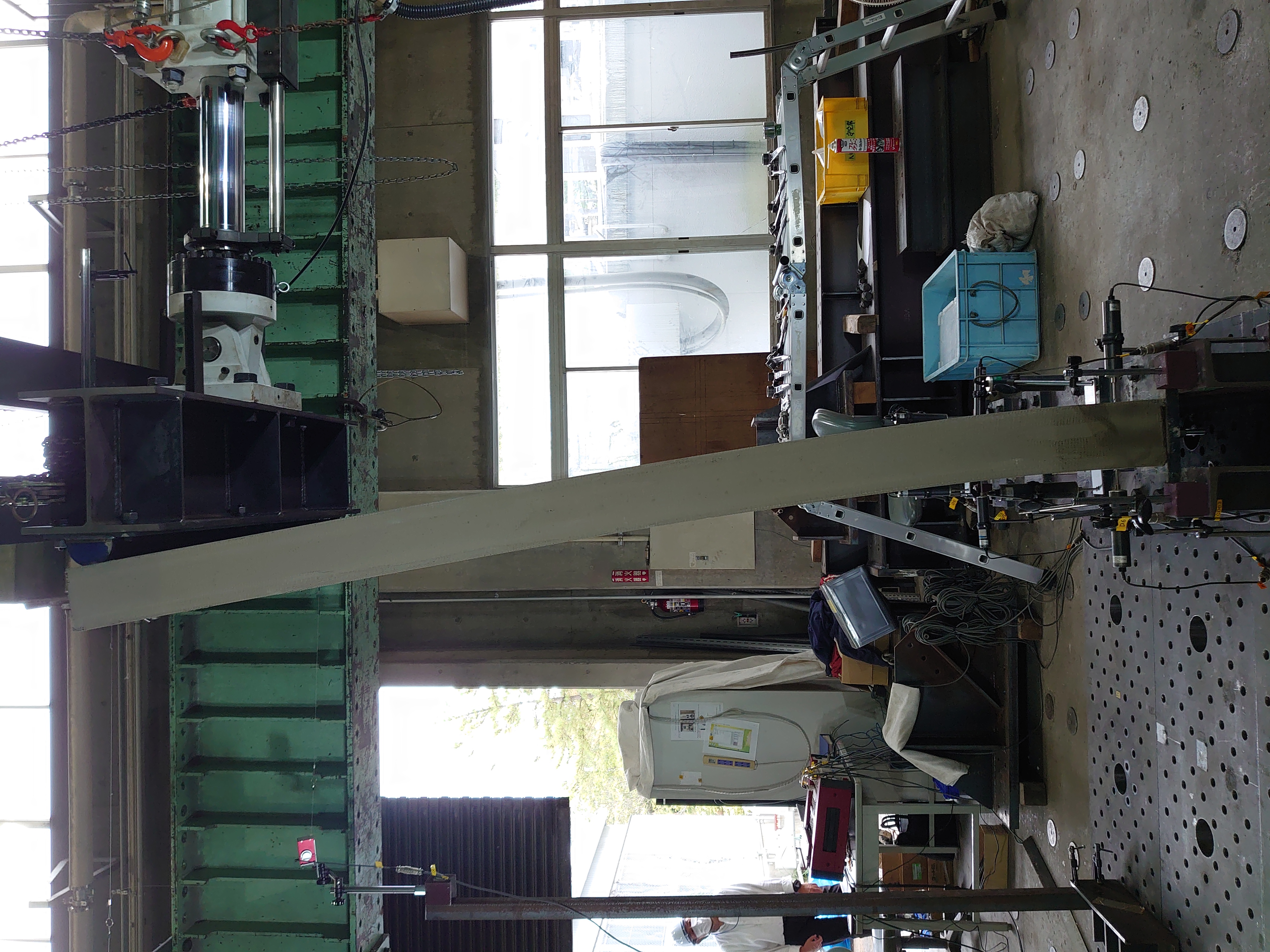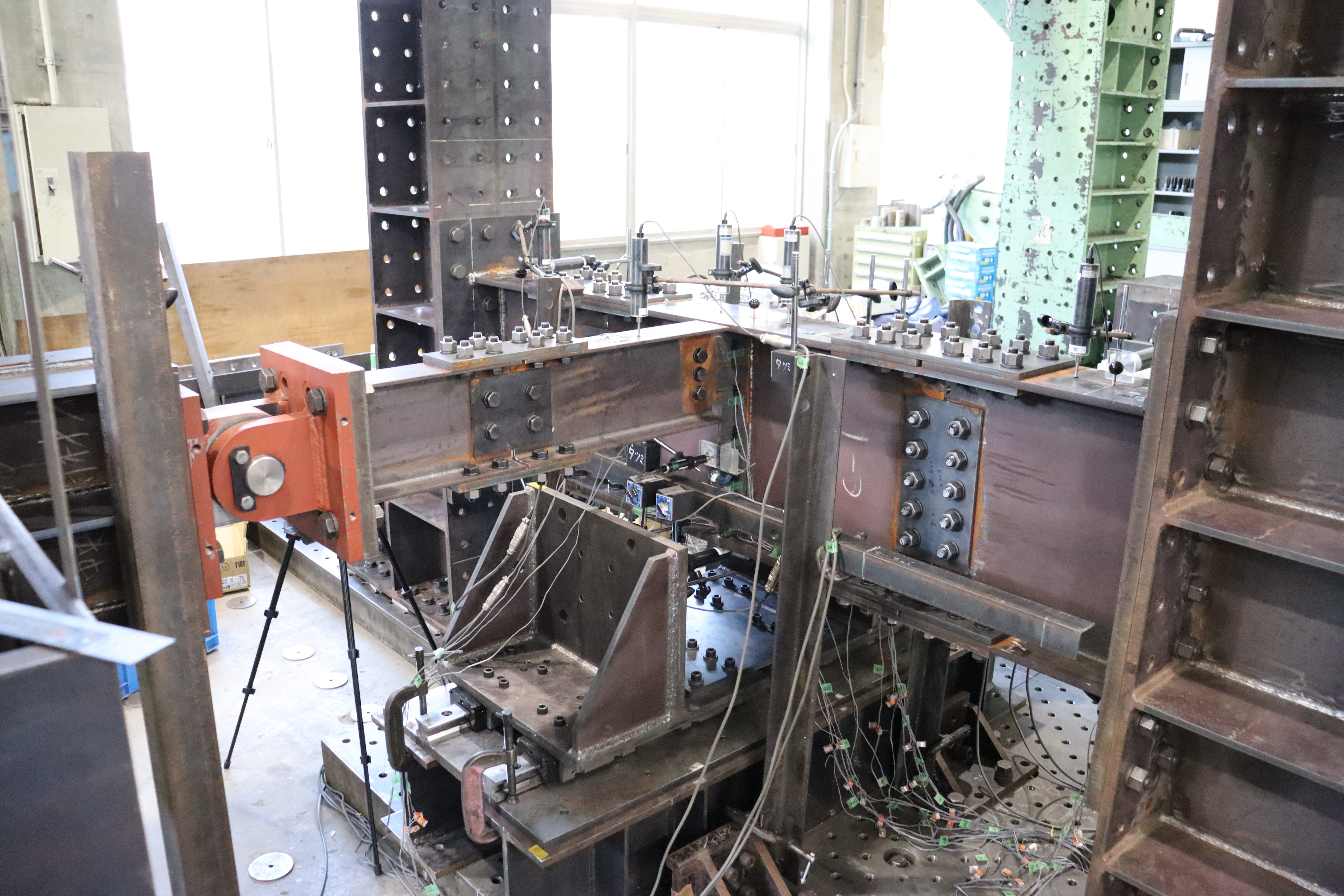 圧縮に強いコンクリートを柱と,柱スパンを確保して大空間を実現可能な鉄骨梁を組み合わせた異種材料からなる骨組は,構造的に合理性がある一方で,接合部での応力伝達が複雑となります.本研究では,プレキャストコンクリートを柱,H形鋼を梁とした接合部を企業との共同研究として考案し,十字形部分架構の実験を行うことで接合部の性能を確認します.