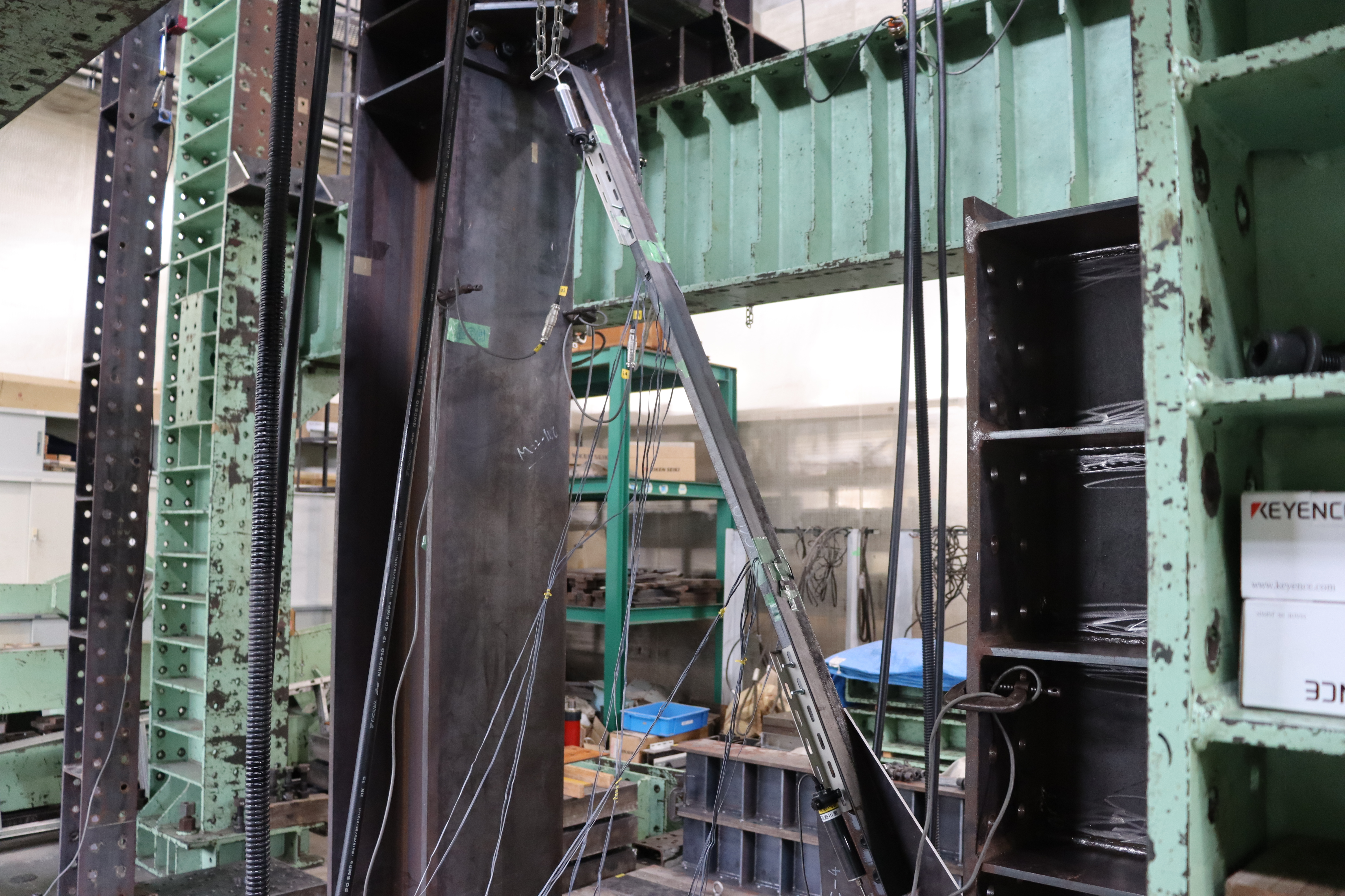 学校体育館などの耐震部材として多用されるブレースは,近年の大地震でも接合部における破壊が報告されています.本研究では,溝形鋼ブレースの取り付け角度がブレースの接合部耐力に及ぼす影響を実験により確認します.
