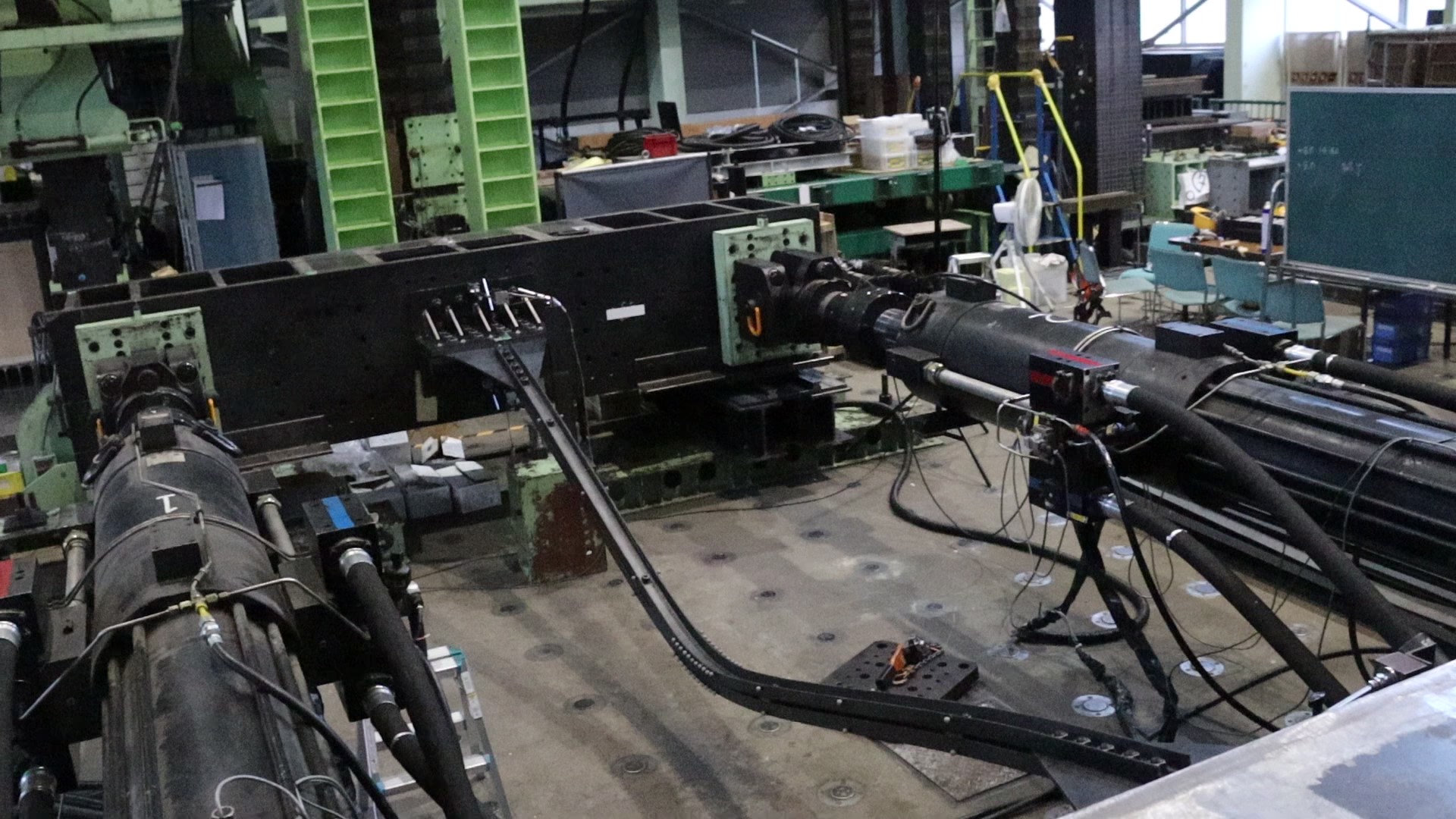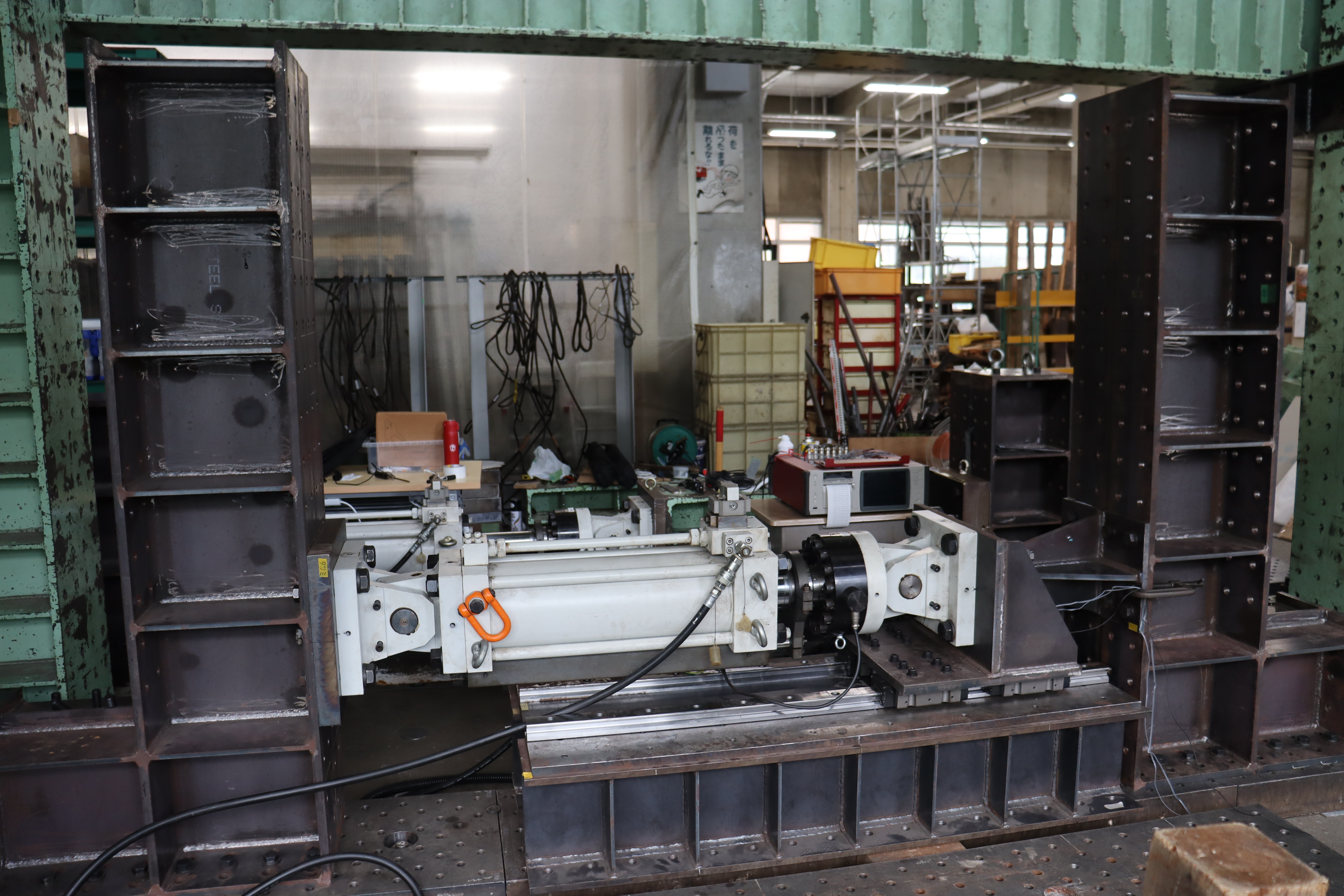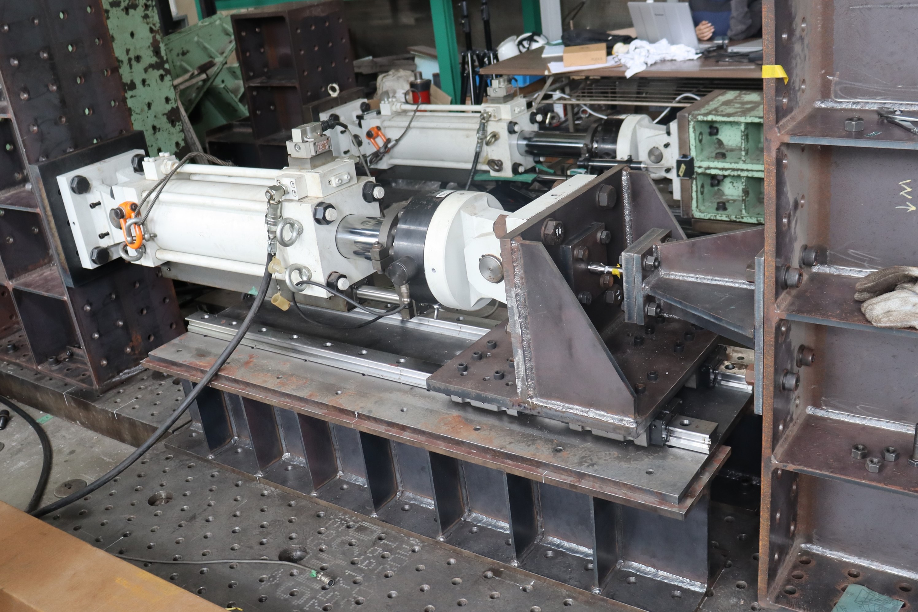 免震構造や制震構造において建物の揺れを抑える役目を果たすダンパー(減衰装置)の一種に,増幅機構付き減衰装置と呼ばれるものがあります.本研究では,増幅機構付き減衰装置に高速で繰り返し変位を与えたときの性能を確認します.