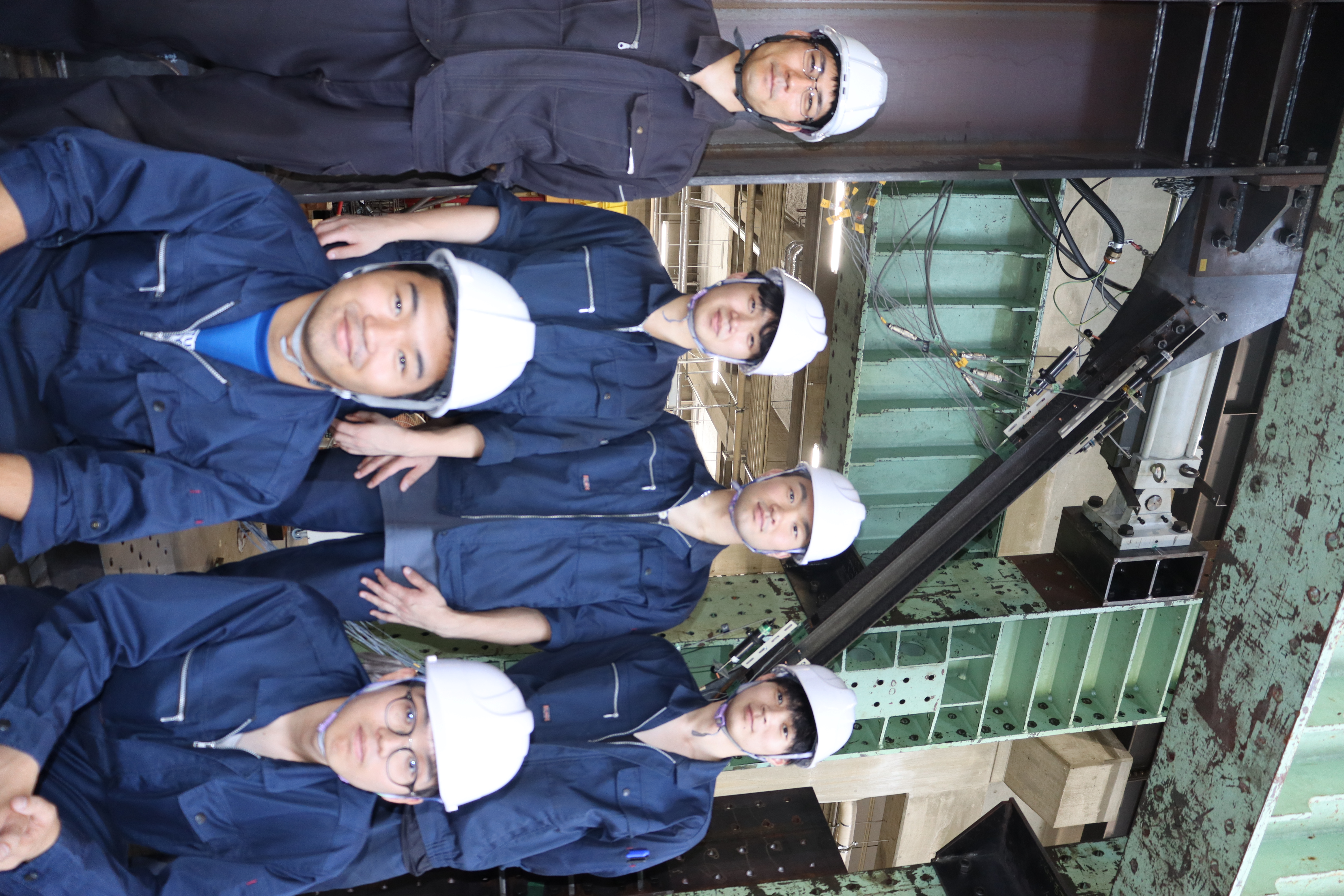 学校体育館などの耐震部材として多用されるブレースは,近年の大地震でも接合部における破壊が報告されています.本研究では,ブレースの取り付け角度が接合部耐力に及ぼす影響を実大実験と数値解析により確認します.暑い中での実験,お疲れ様でした.